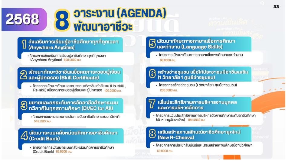 ตามความสนใจ และโอกาสของตน ส่งเสริมให้มีการประสานความร่วมมือเพื่อจัดการศึกษา และ พัฒนาหลักสูตรร่วมกันระหว่างสถาบันการอาชีวศึกษา สถานศึกษา หน่วยงาน